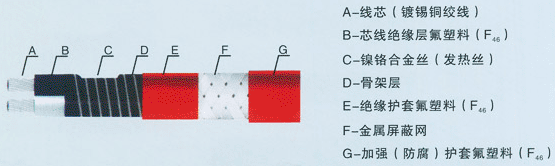 一、 产品结构与工作原理 电源母线为二根平行绝缘铜线,在内绝缘层上缠绕电热丝,并将电热丝每隔一定距离(即“发热节长”)与母线连接,形成连续并联电阻。母线通电后,各并联电阻发热,因而形成一条连续的加热电缆。 单相恒功率加热电缆主要用于各处管道、仪表的防冻、保温,最高维持温度150℃,可用于工厂一区、二区爆炸性气体场合。