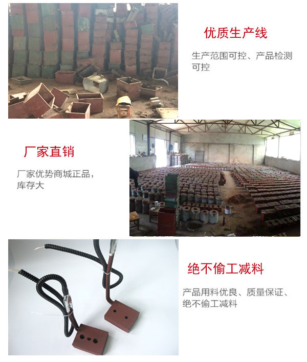 4、金属铸造加热器应做好定位固定,有效发热区必须与受热体紧密贴合,严禁空烧。发现表面有灰尘或污染物时,应及时清除干净再用,以免影晌散热而缩短使用寿命。