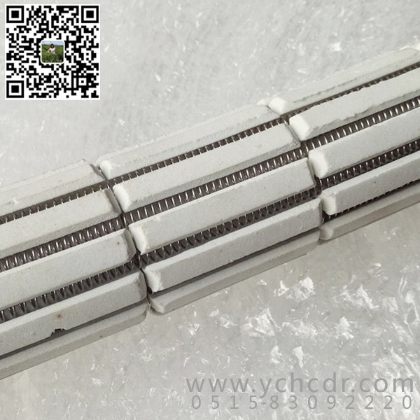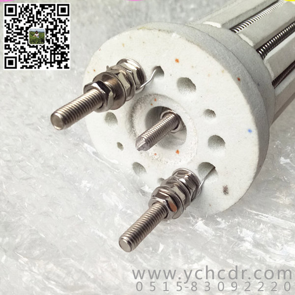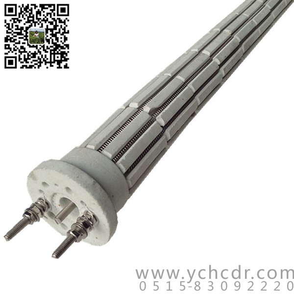 其结构是将加热元件的电阻丝(带)弯成“U”形串入多块绝缘耐高温的陶瓷支撑盘中,中间用一根耐热棒固定,一般有效长度:900~2400;一般套管外径:φ80~φ280。单根功率:2kw~40kw;单根电压:30v~220v。这种辐射管寿命较长。